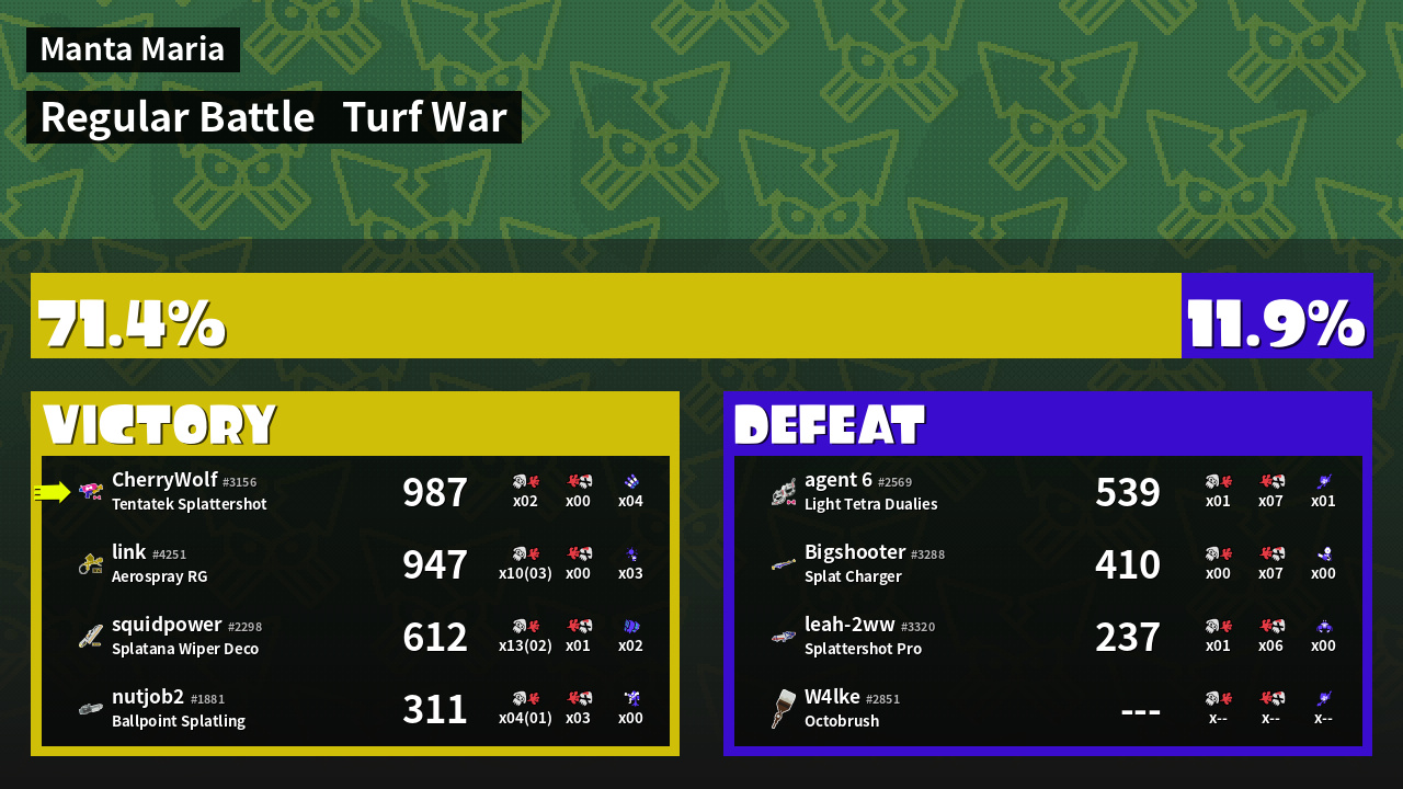 | Weapon | Tentatek Splattershot ( Splat Bomb / Triple Inkstrike) | ||