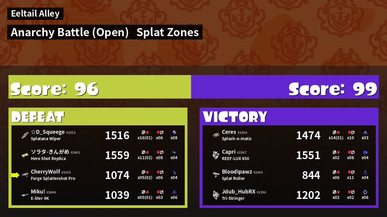 | Mode | Splat Zones - Anarchy Battle (Open) | ||