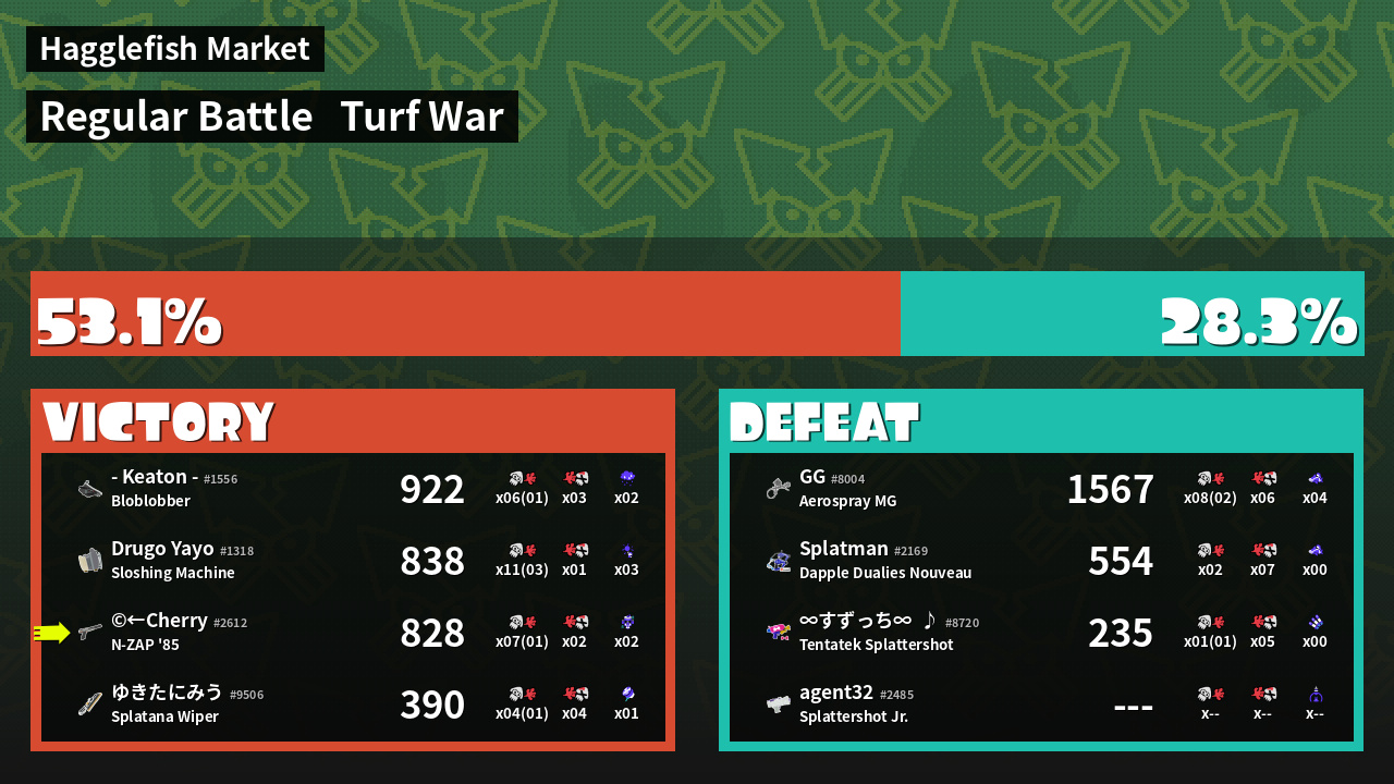 | Mode | Turf War - Regular Battle | ||