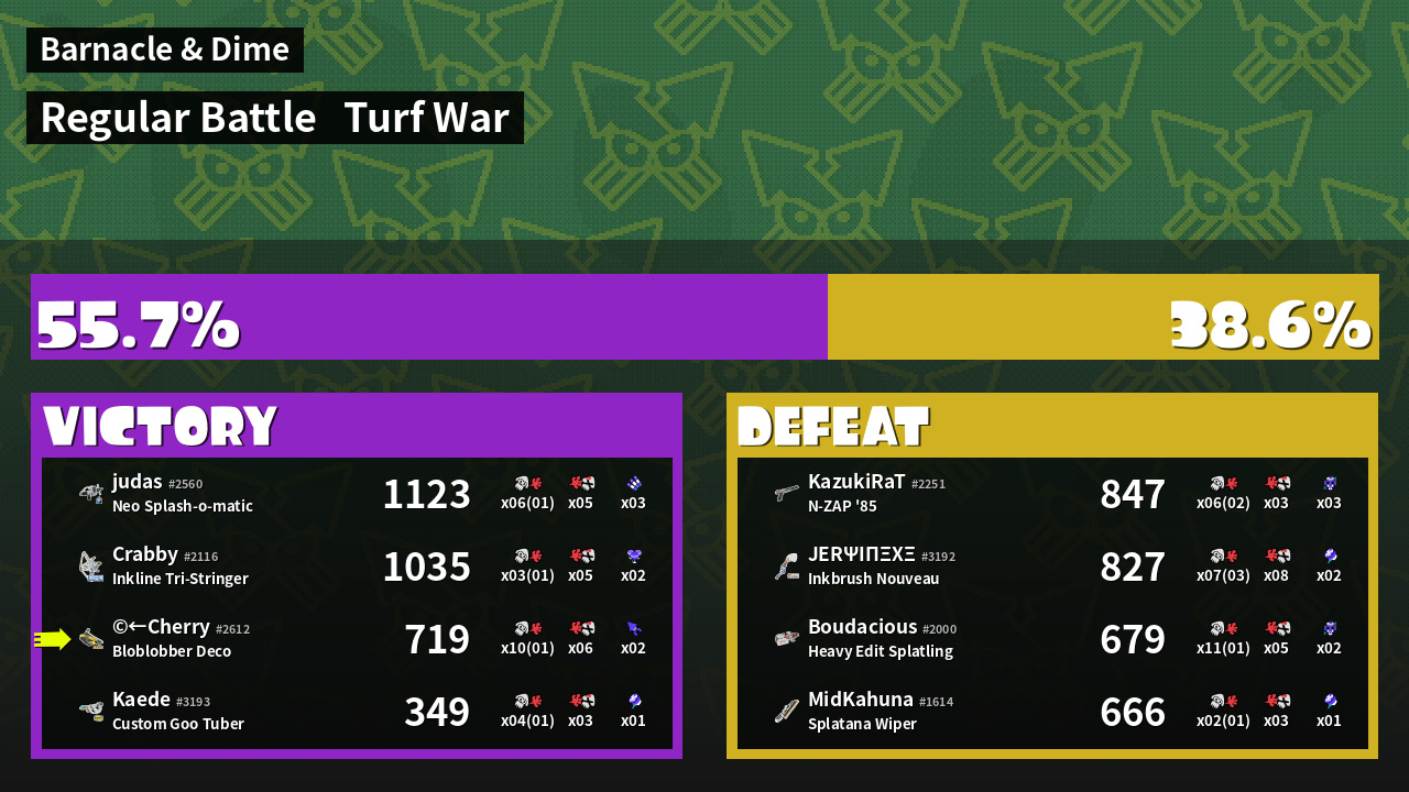 | Mode | Turf War - Regular Battle | ||