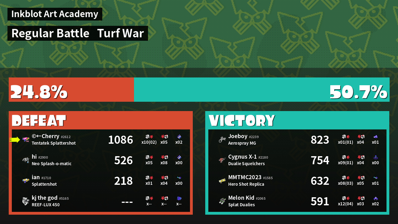 | Mode | Turf War - Regular Battle | ||