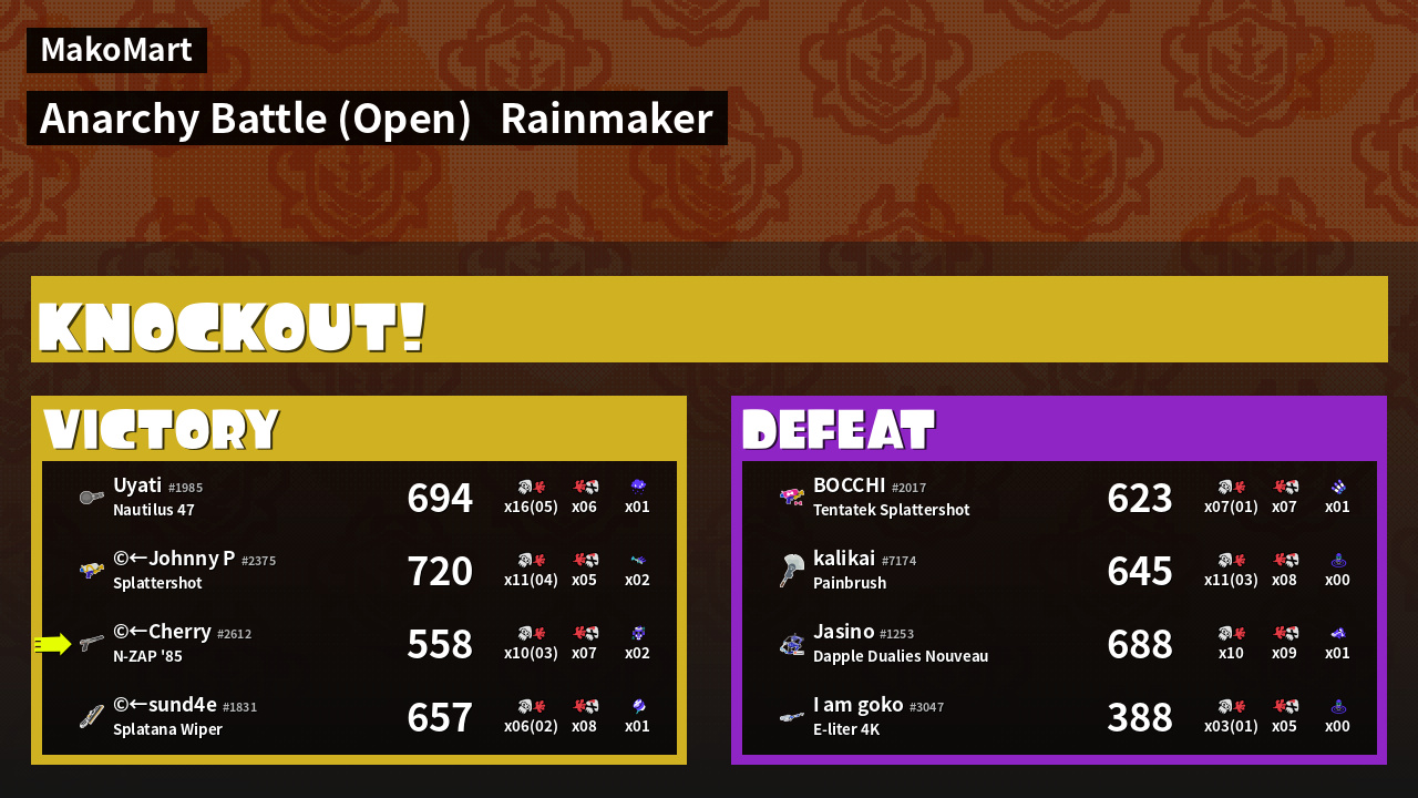 | Mode | Rainmaker - Anarchy Battle (Open) | ||