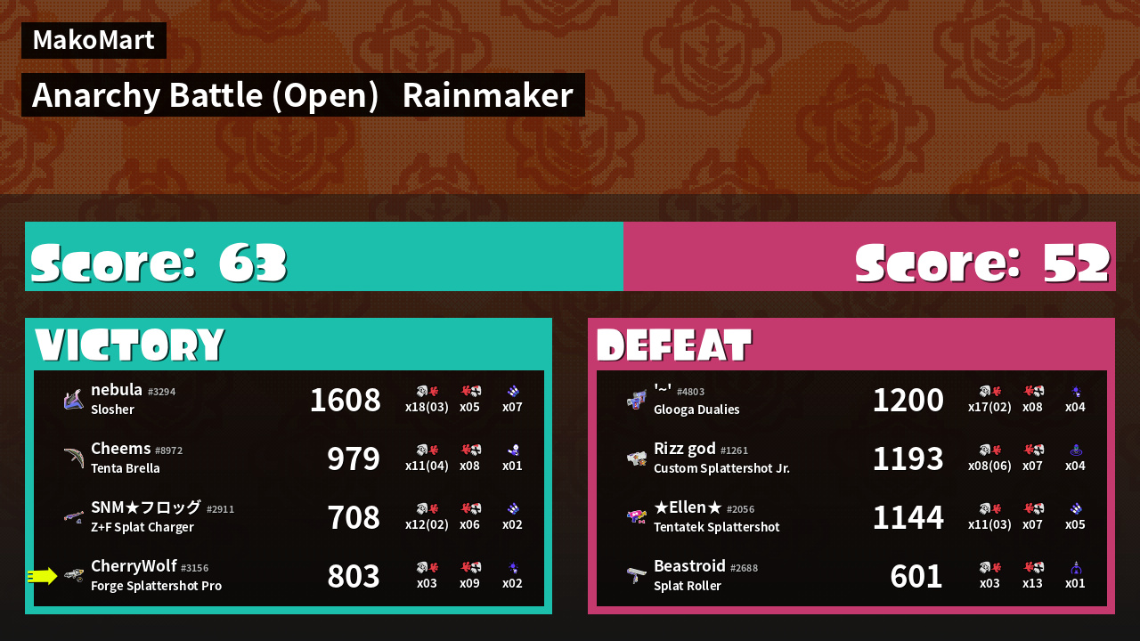 | Mode | Rainmaker - Anarchy Battle (Open) | ||