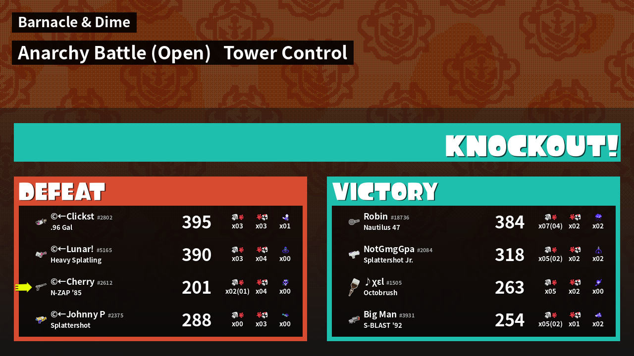 | Mode | Tower Control - Anarchy Battle (Open) | ||
