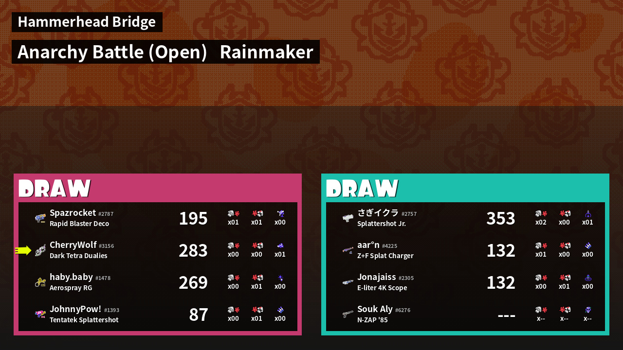 | Mode | Rainmaker - Anarchy Battle (Open) | ||