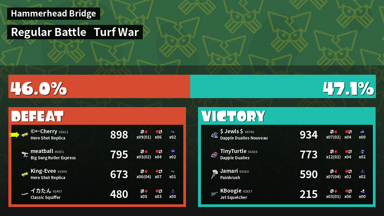 | Medals | #1 Overall Splatter #1 Turf Inker #1 Enemy Splatter | ||
