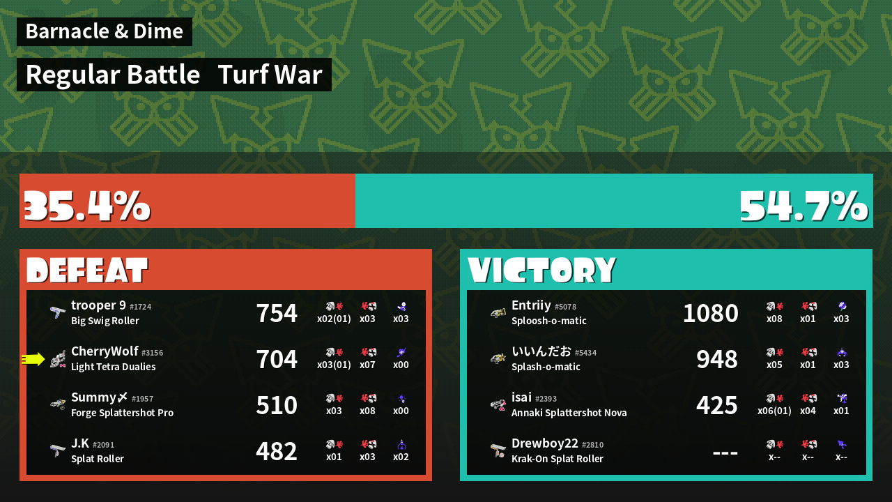 | Medals | #1 Overall Splatter #1 Splat Assister #1 Ground Traveler | ||