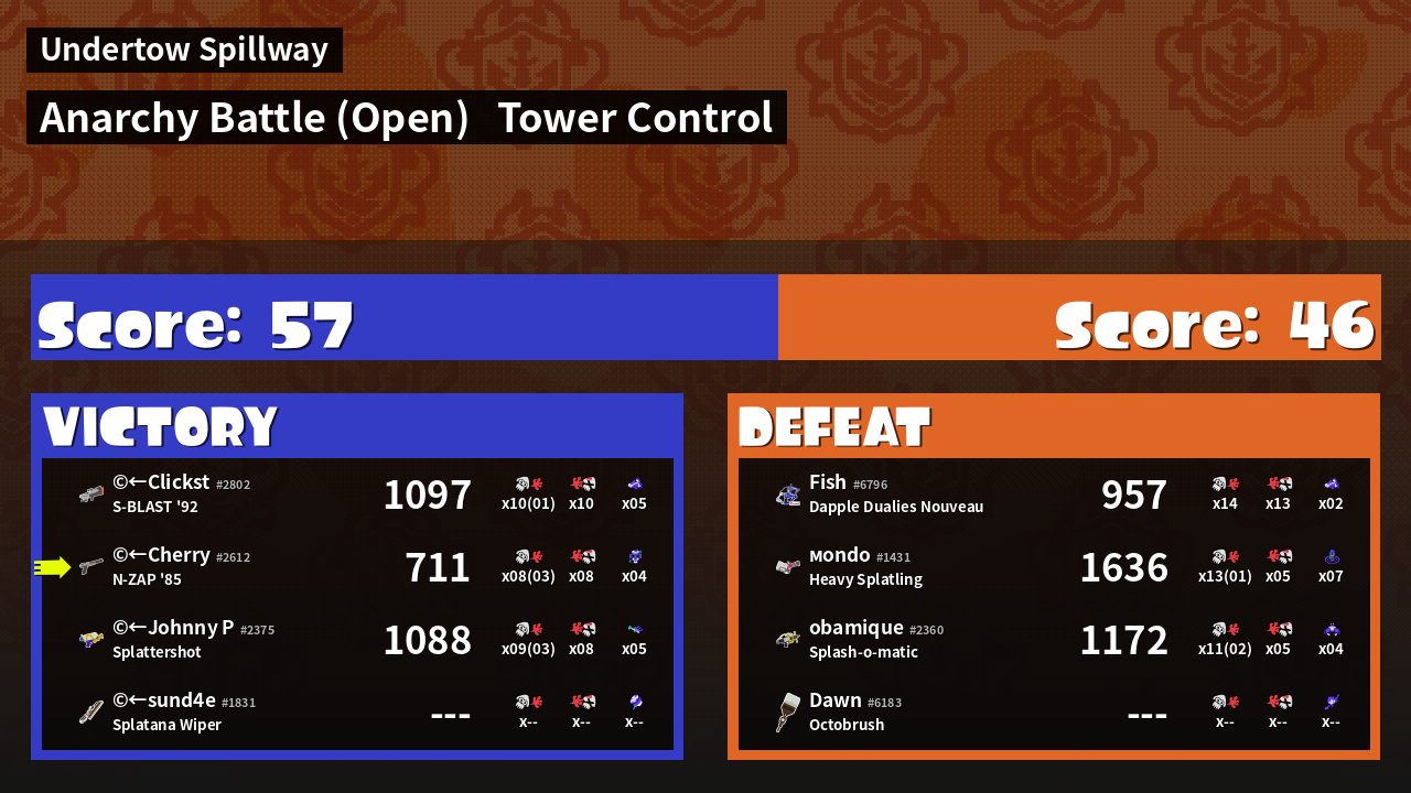 | Mode | Tower Control - Anarchy Battle (Open) | ||