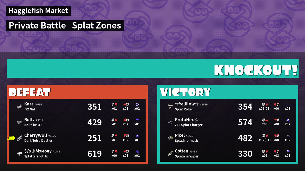 | Medals | #1 Overall Splatter #1 Enemy Splatter | ||