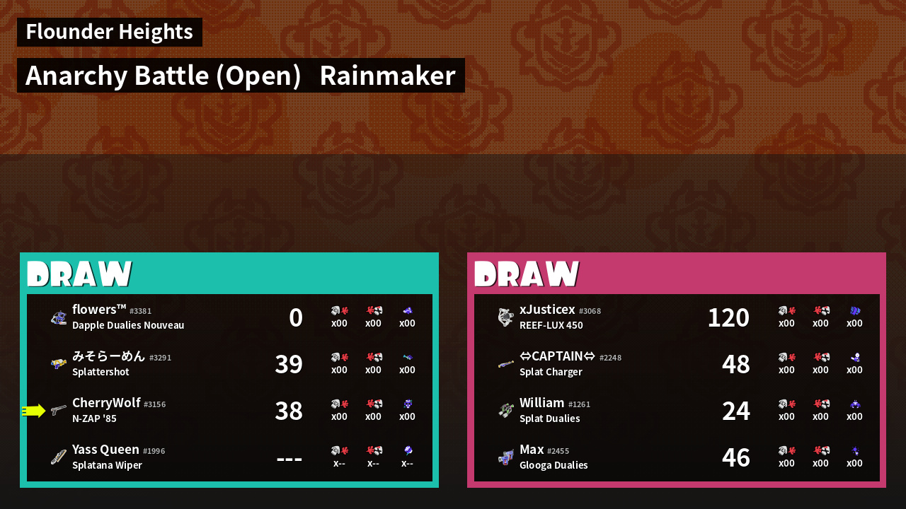 | Mode | Rainmaker - Anarchy Battle (Open) | ||