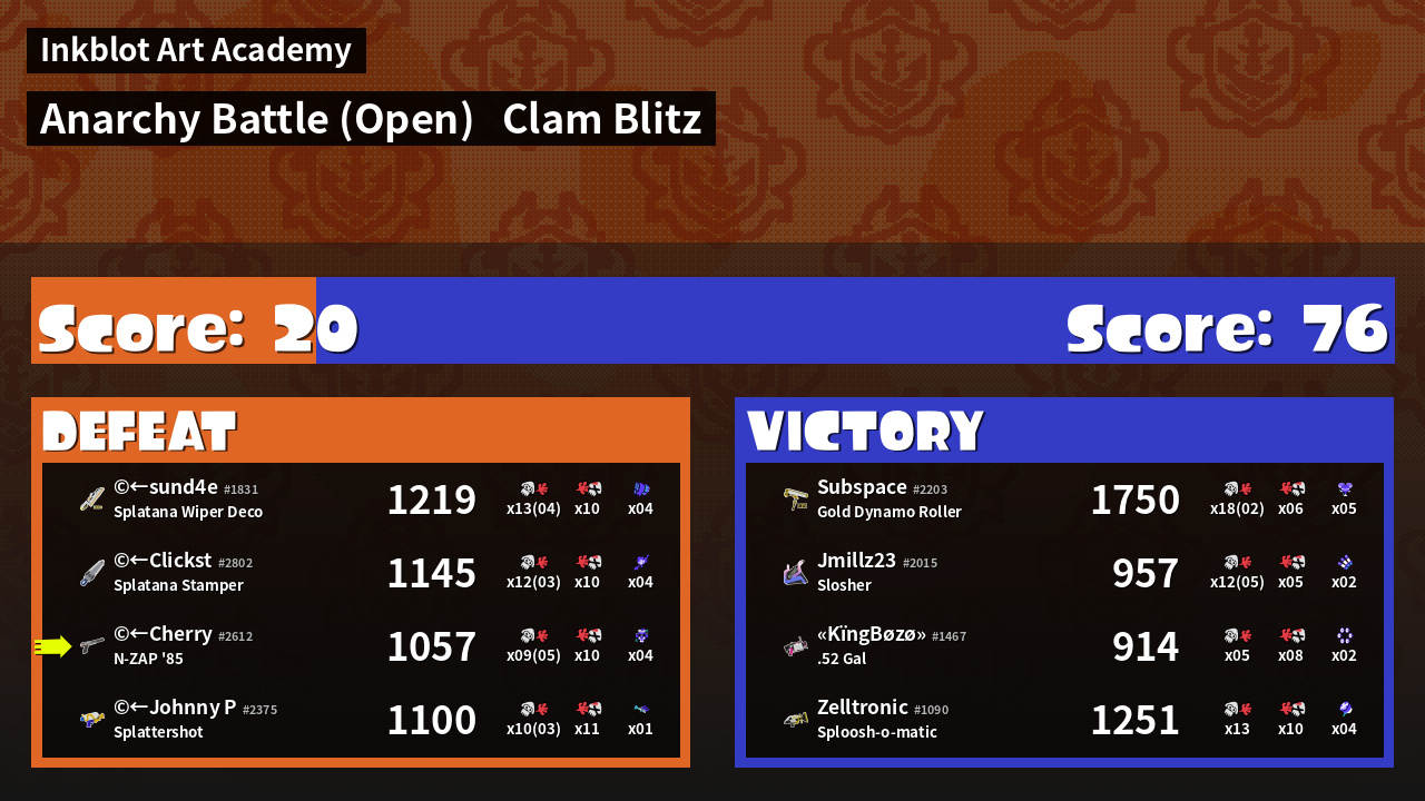 | Mode | Clam Blitz - Anarchy Battle (Open) | ||