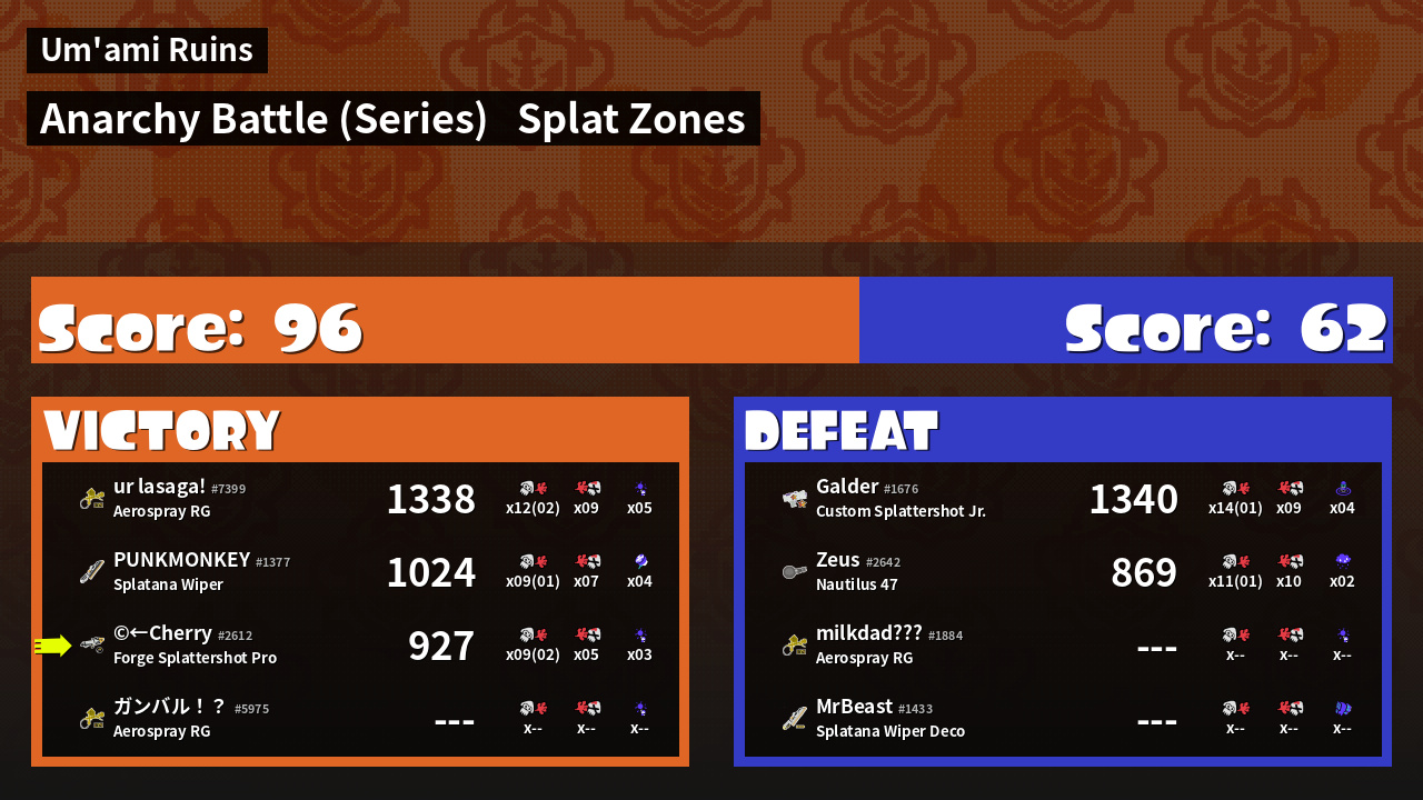| Mode | Splat Zones - Anarchy Battle (Series) | ||
