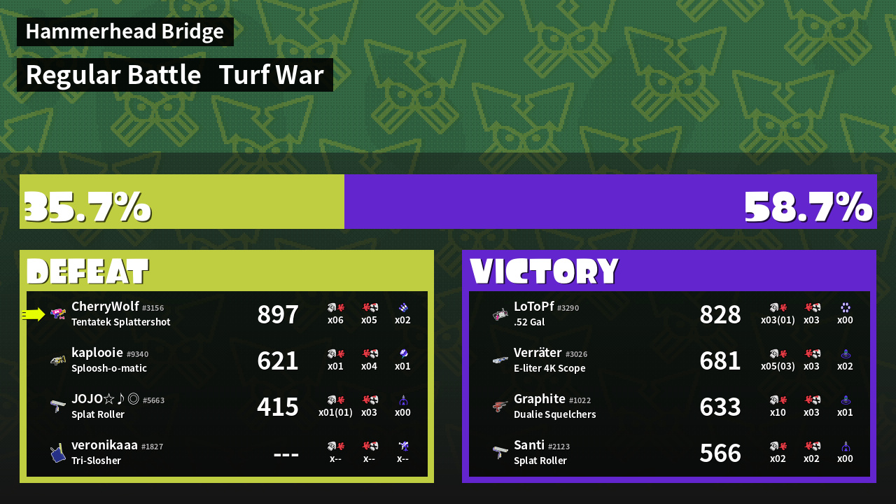 | Mode | Turf War - Regular Battle | ||