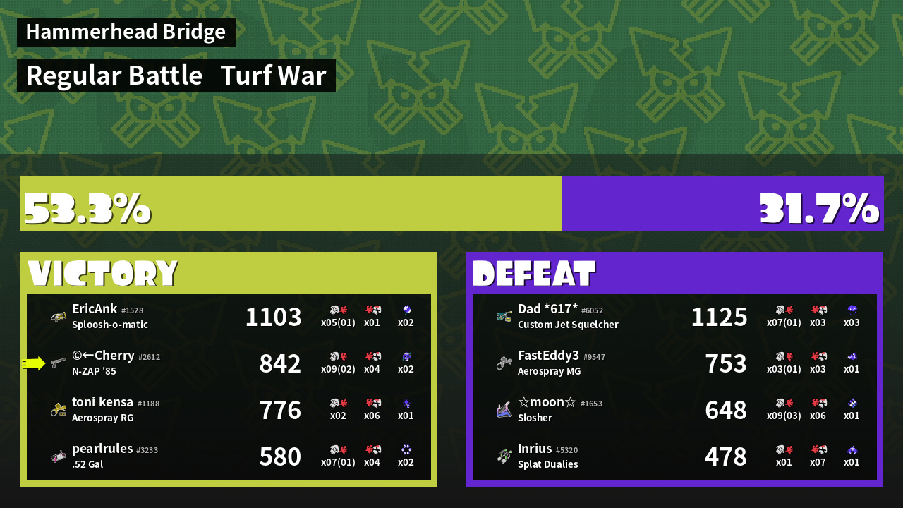 | Medals | #1 Overall Splatter #1 Enemy Splatter #1 Splat Assister | ||
