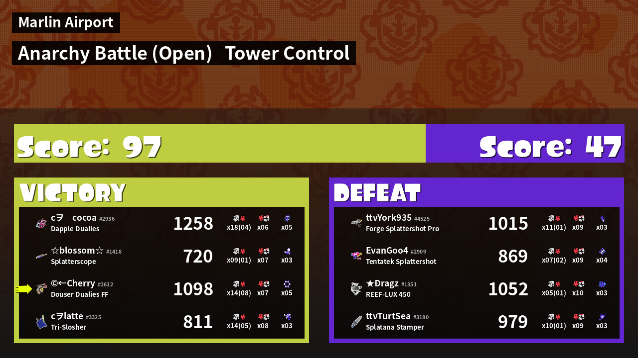 | Mode | Tower Control - Anarchy Battle (Open) | ||