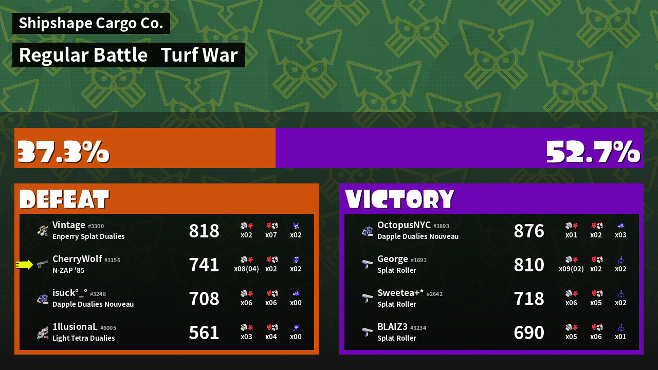 | Medals | #1 Overall Splatter #1 Super Jump Spot #1 Splat Assister | ||