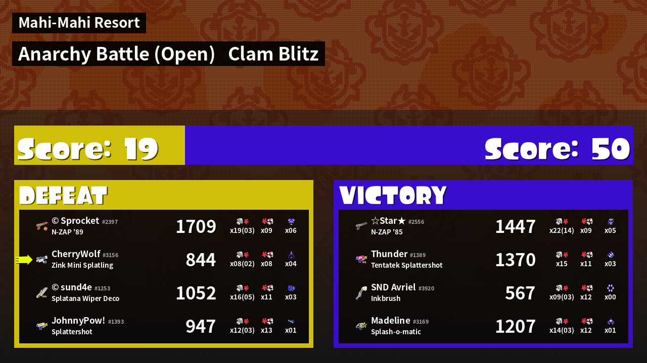 | Mode | Clam Blitz - Anarchy Battle (Open) | ||