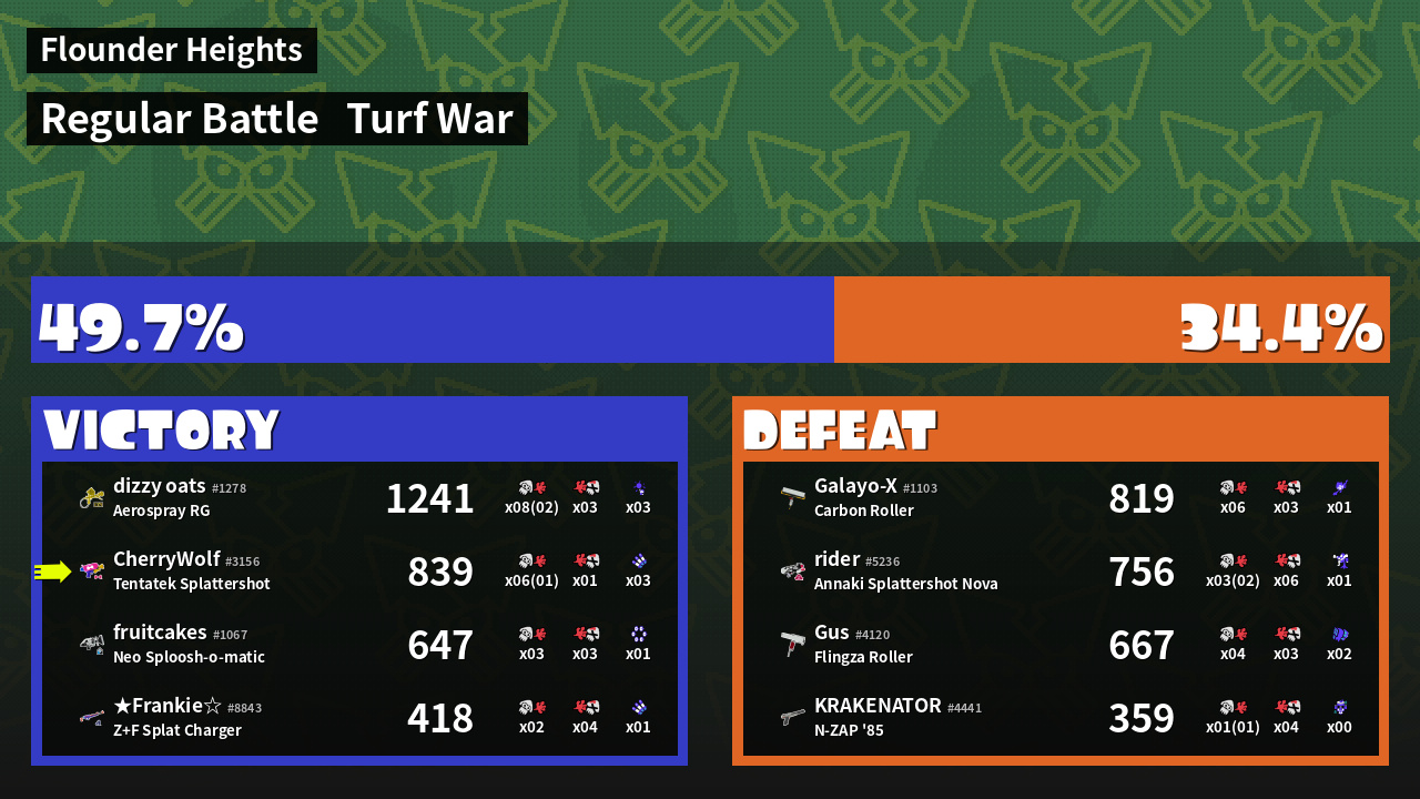 | Medals | #1 Super Jump Spot #1 Ink Consumer #2 Overall Splatter | ||
