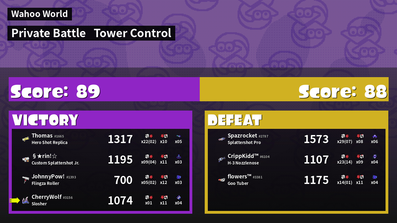 | Mode | Tower Control - Private Battle | ||
