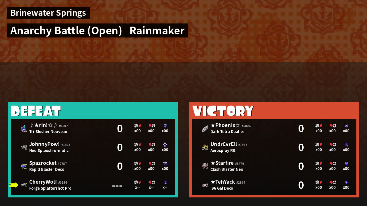 | Mode | Rainmaker - Anarchy Battle (Open) | ||