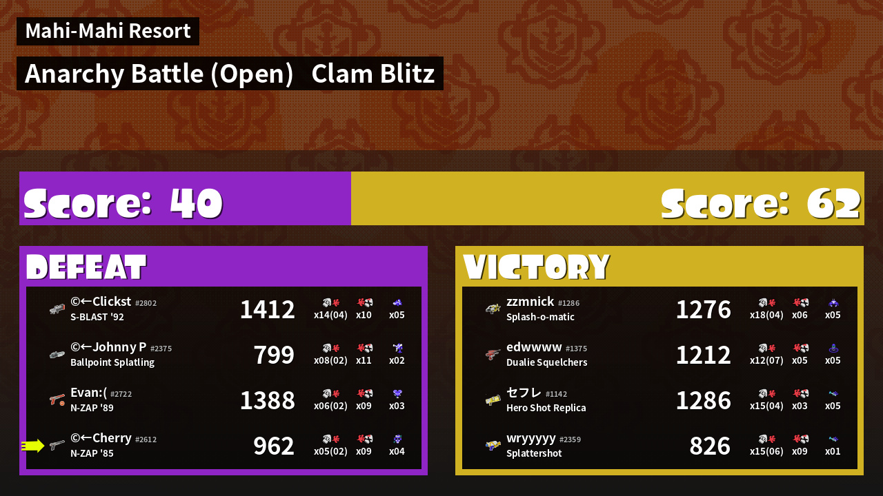 | Mode | Clam Blitz - Anarchy Battle (Open) | ||