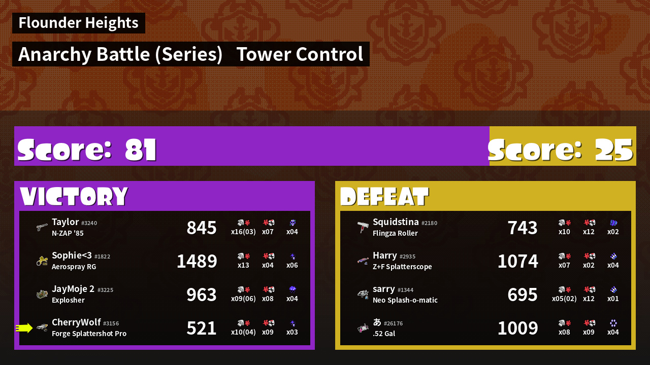 | Mode | Tower Control - Anarchy Battle (Series) | ||