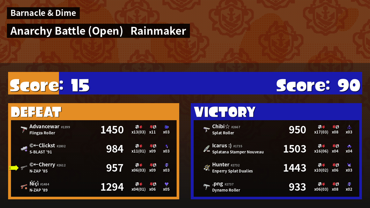 | Mode | Rainmaker - Anarchy Battle (Open) | ||