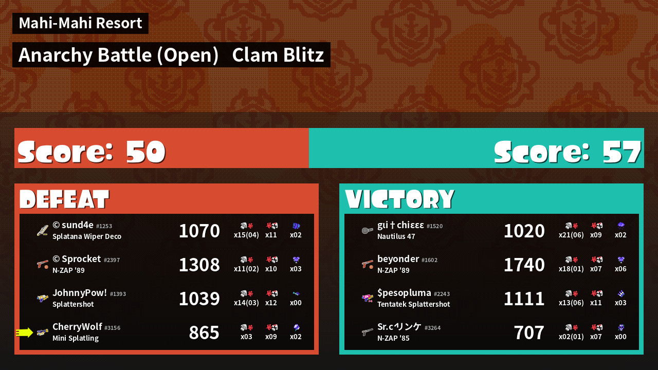 | Mode | Clam Blitz - Anarchy Battle (Open) | ||