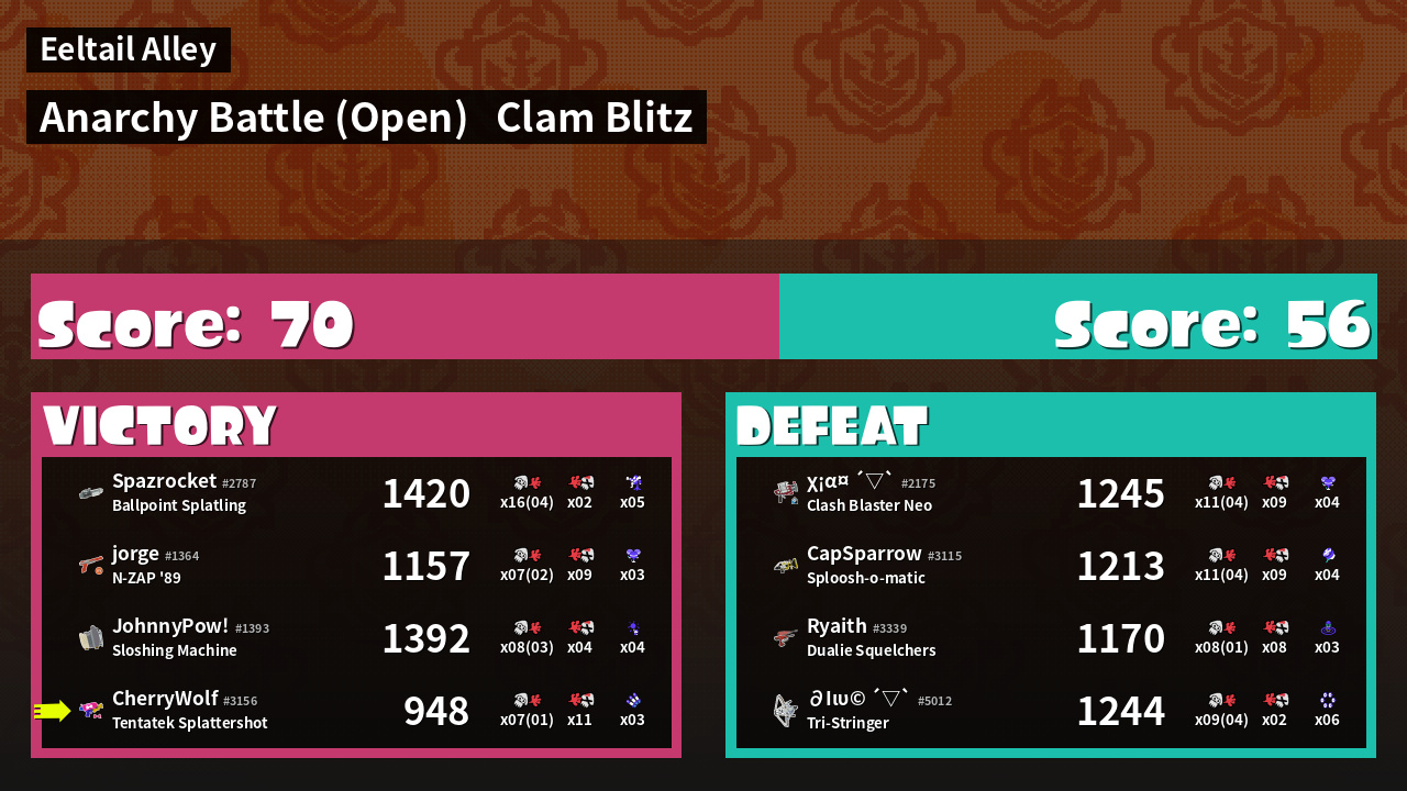 | Mode | Clam Blitz - Anarchy Battle (Open) | ||