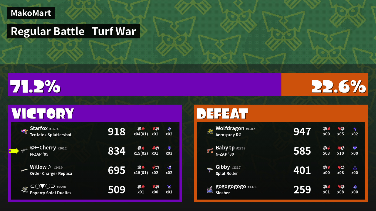 | Mode | Turf War - Regular Battle | ||