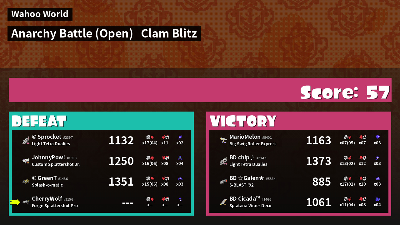 | Mode | Clam Blitz - Anarchy Battle (Open) | ||