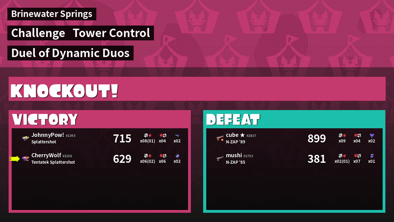 | Medals | Record-Score Setter #1 Splat Assister #1 Ground Traveler | ||