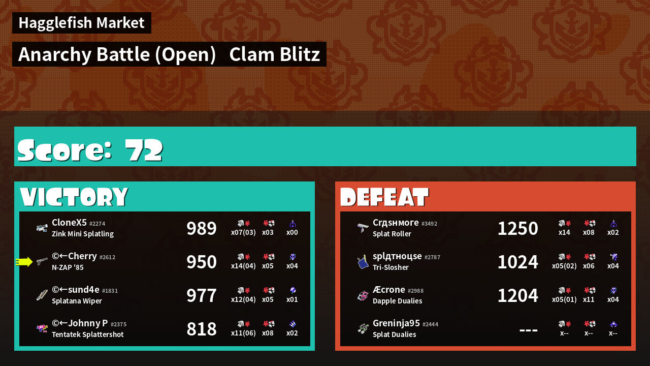 | Mode | Clam Blitz - Anarchy Battle (Open) | ||