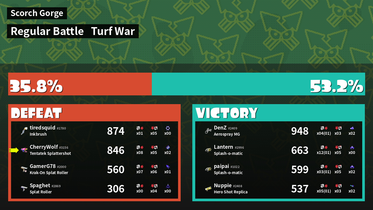 | Medals | #1 Overall Splatter #1 Popular Target #1 Enemy-Base Inker | ||