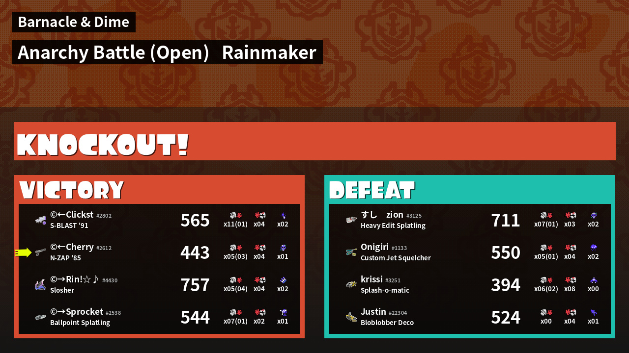 | Mode | Rainmaker - Anarchy Battle (Open) | ||