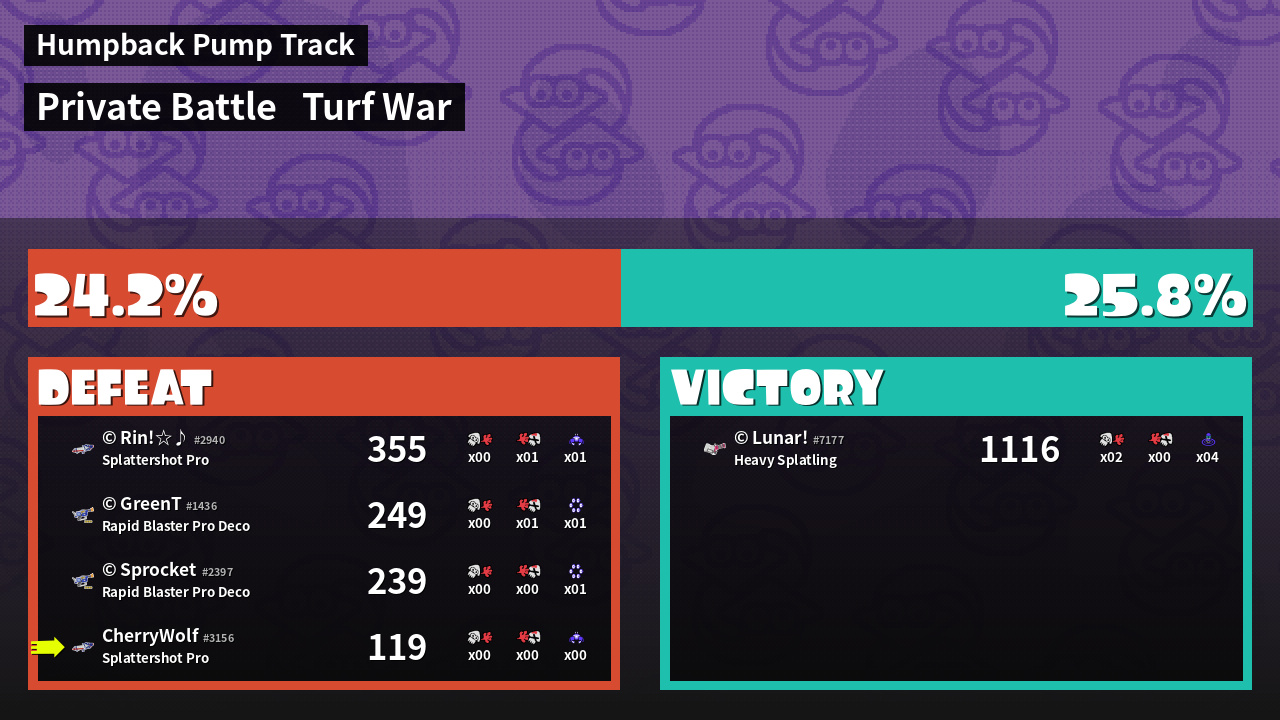 | Mode | Turf War - Private Battle | ||