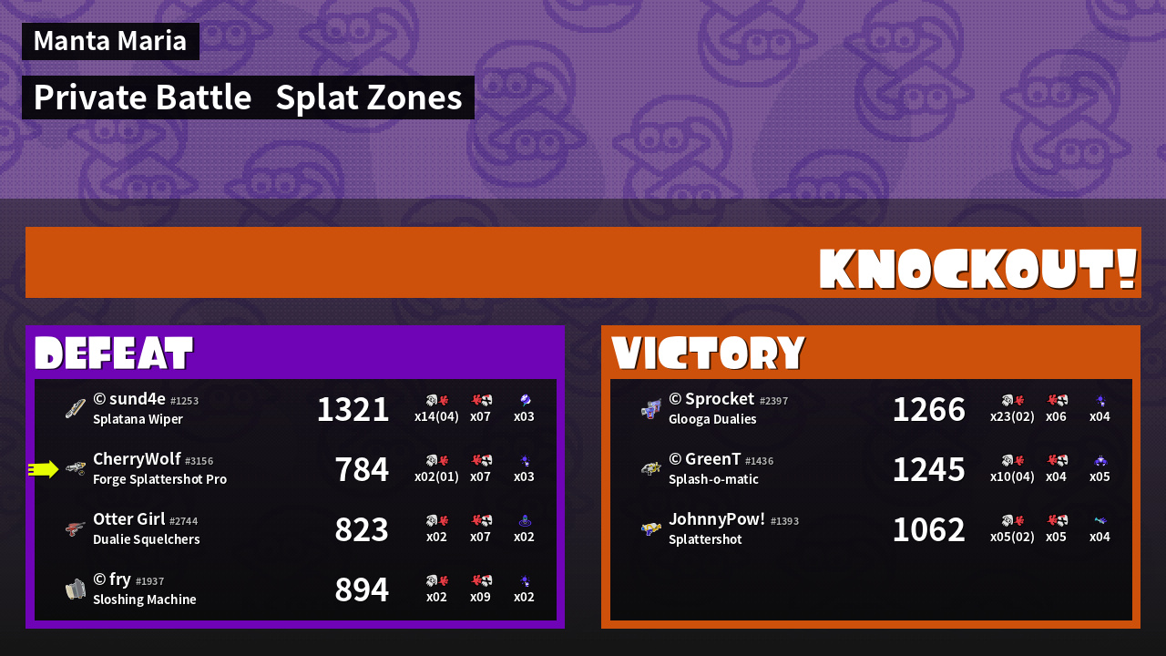 | Mode | Splat Zones - Private Battle | ||