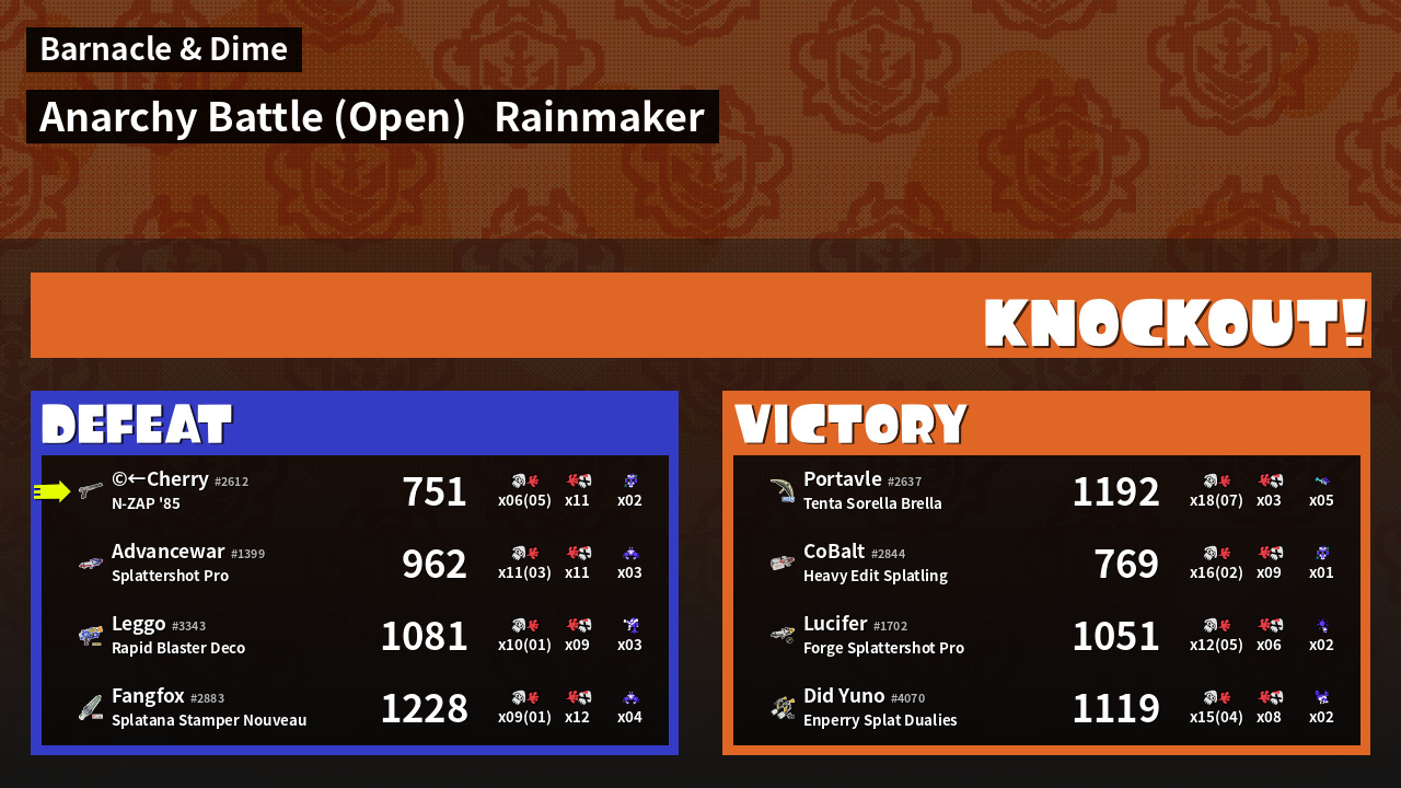 | Mode | Rainmaker - Anarchy Battle (Open) | ||