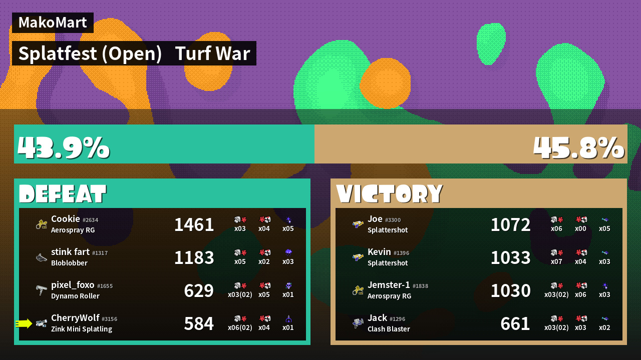 | Medals | #1 Overall Splatter #1 Popular Target #1 Splat Assister | ||