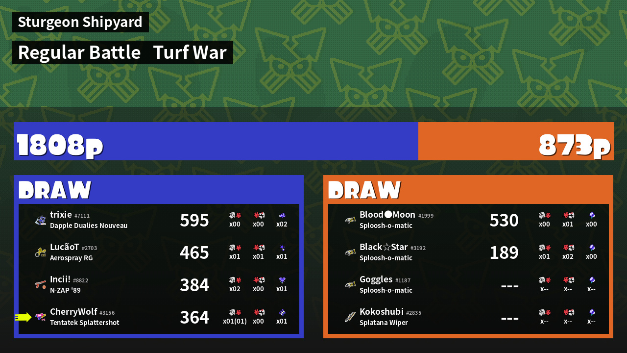 | Weapon | Tentatek Splattershot ( Splat Bomb / Triple Inkstrike) | ||