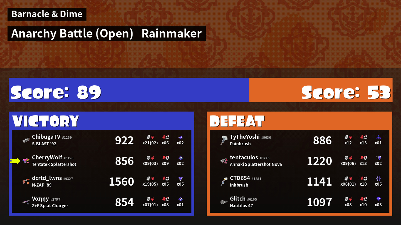 | Mode | Rainmaker - Anarchy Battle (Open) | ||
