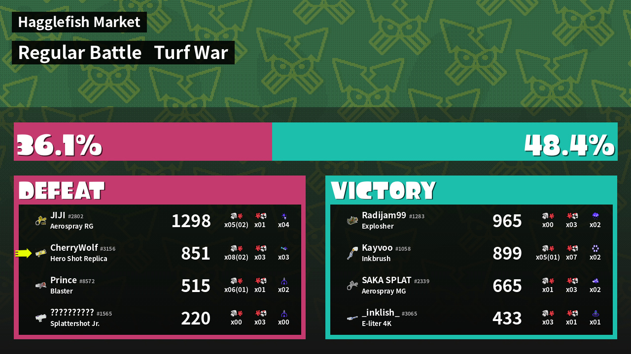 | Medals | #1 Overall Splatter #1 Enemy Splatter #1 Splat Assister | ||