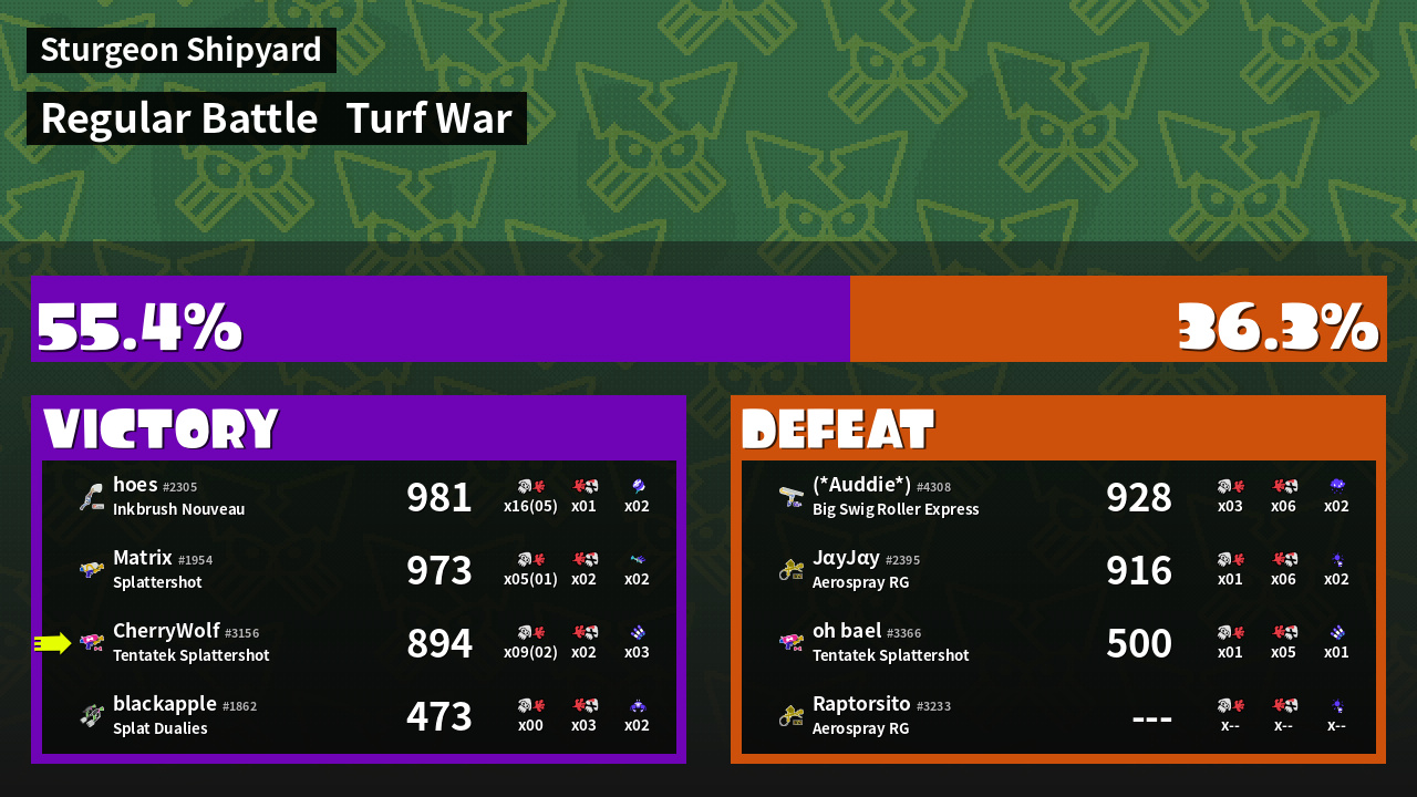 | Mode | Turf War - Regular Battle | ||
