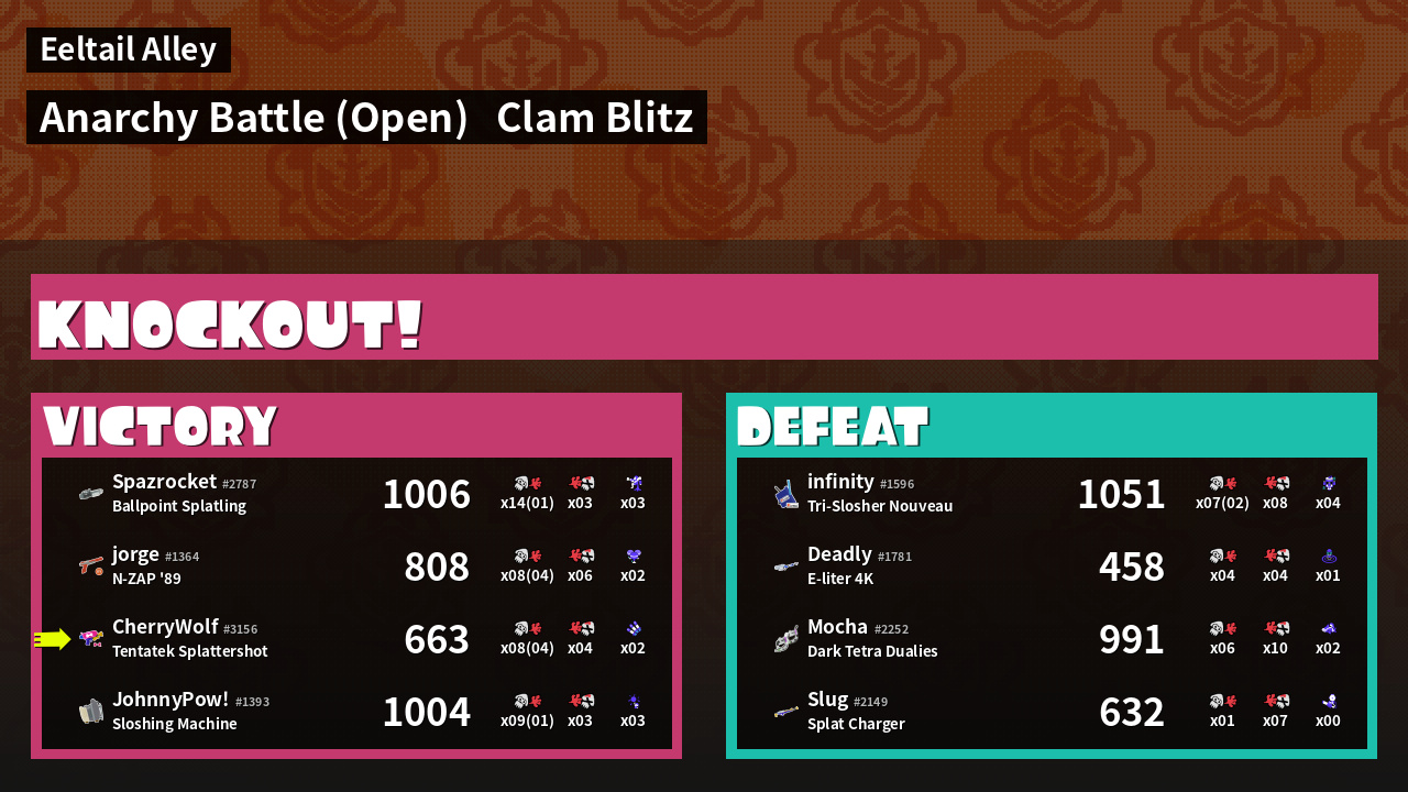 | Mode | Clam Blitz - Anarchy Battle (Open) | ||
