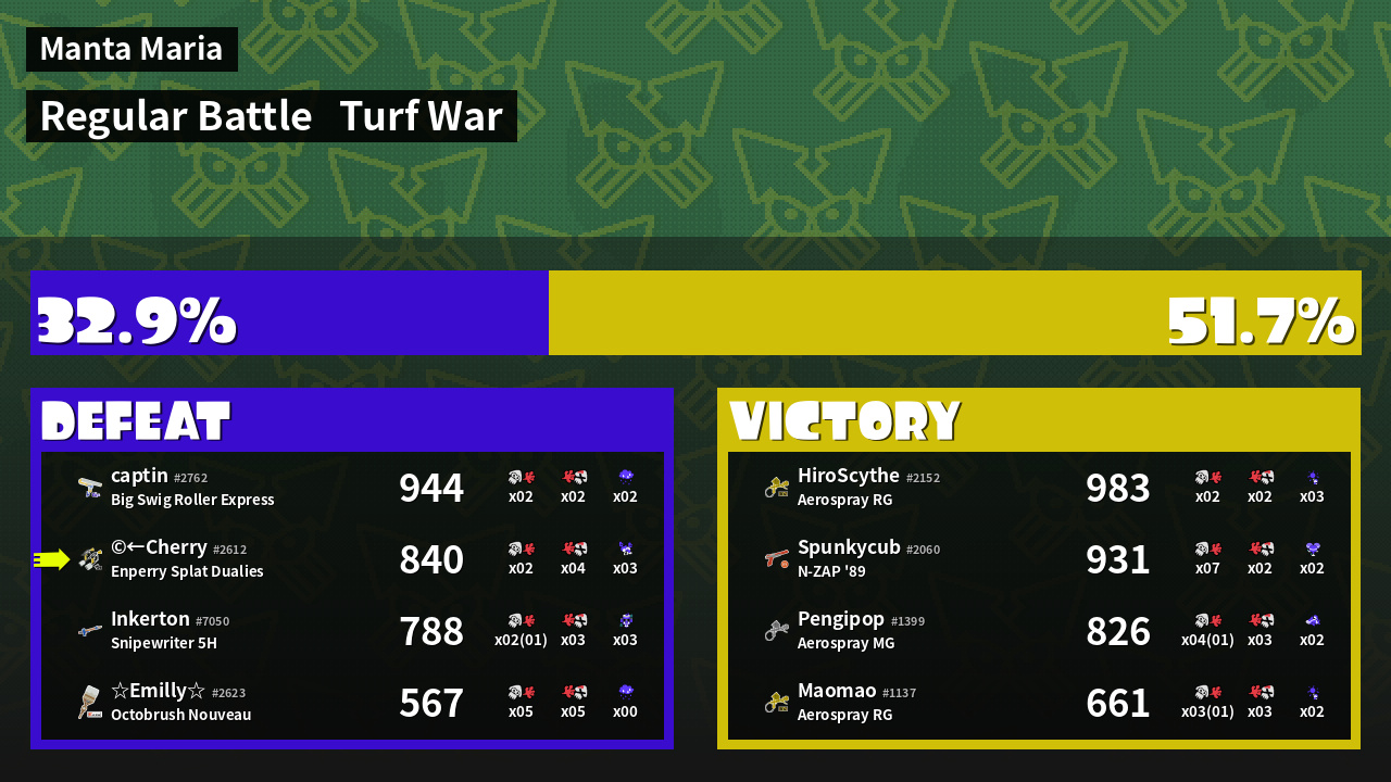 | Weapon | Enperry Splat Dualies ( Curling Bomb / Triple Splashdown) | ||