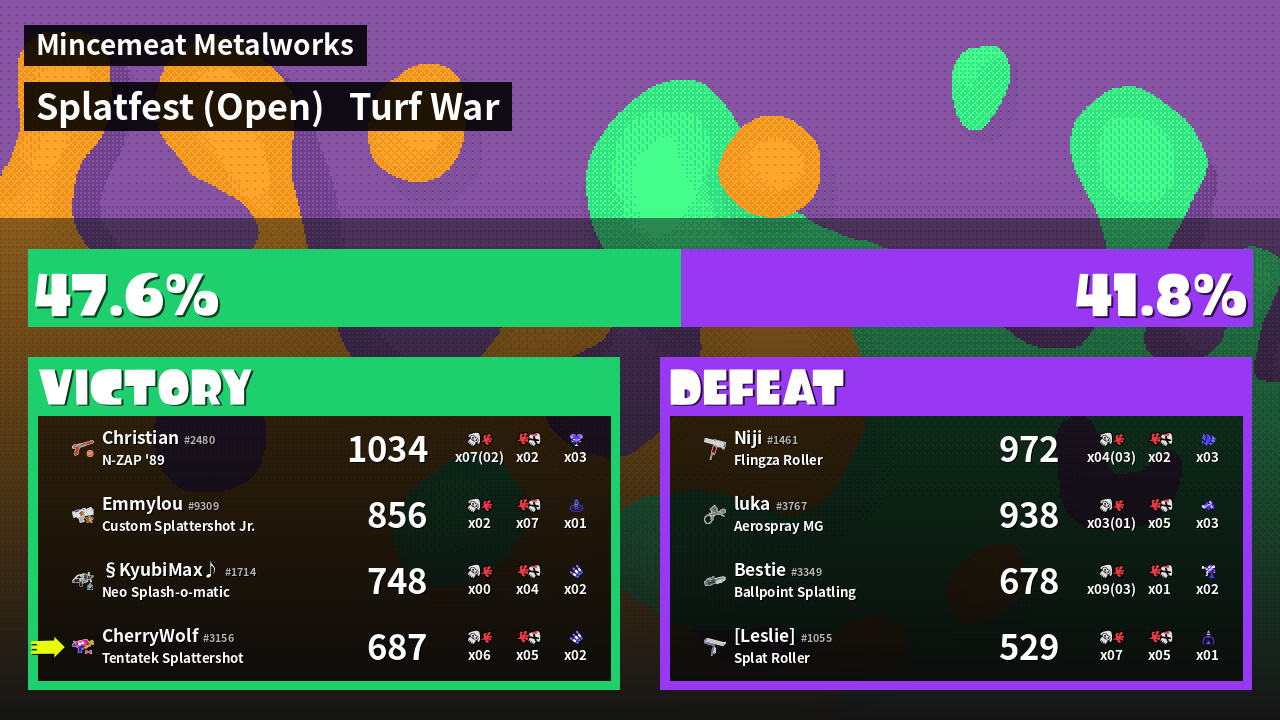 | Medals | #1 Enemy Splatter #1 Ground Traveler First Splat! | ||
