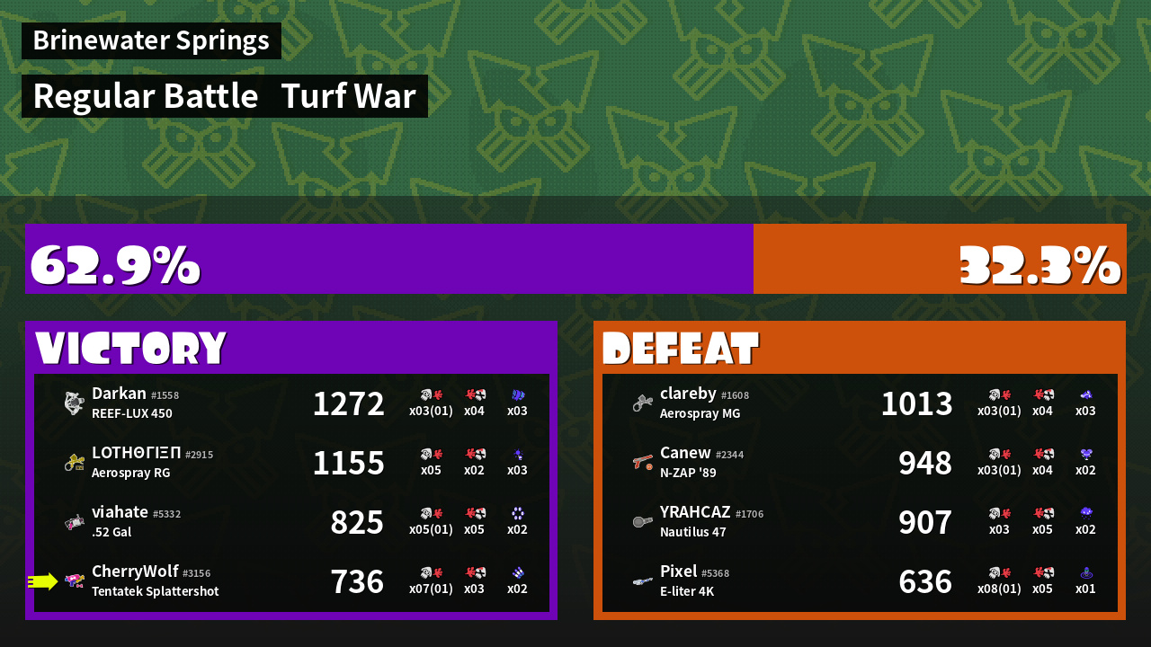 | Mode | Turf War - Regular Battle | ||