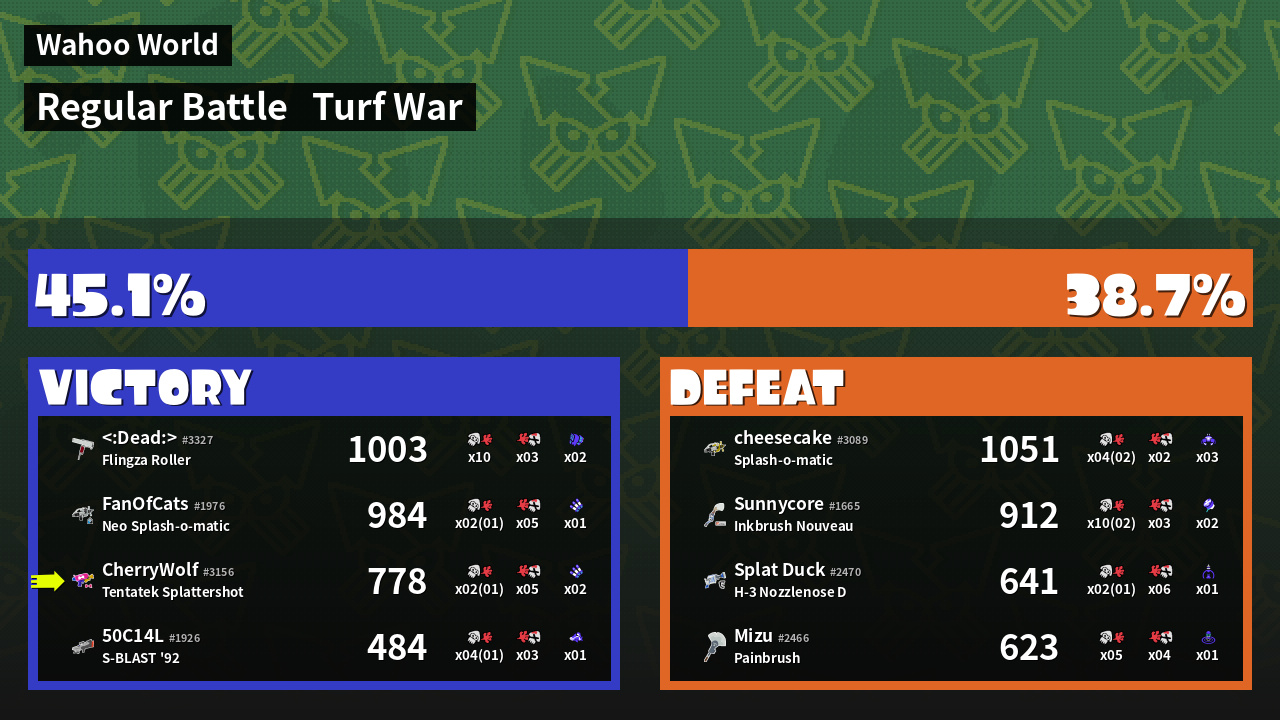 | Mode | Turf War - Regular Battle | ||