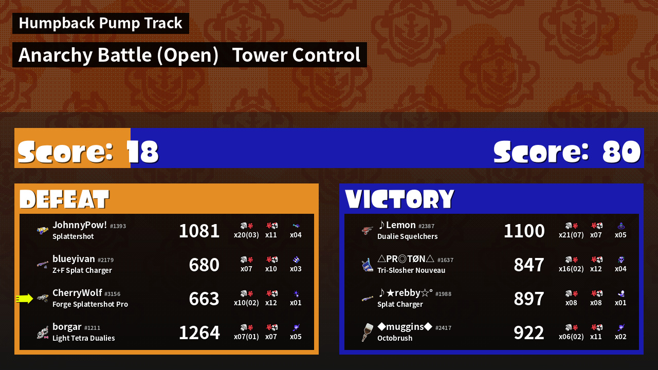| Mode | Tower Control - Anarchy Battle (Open) | ||