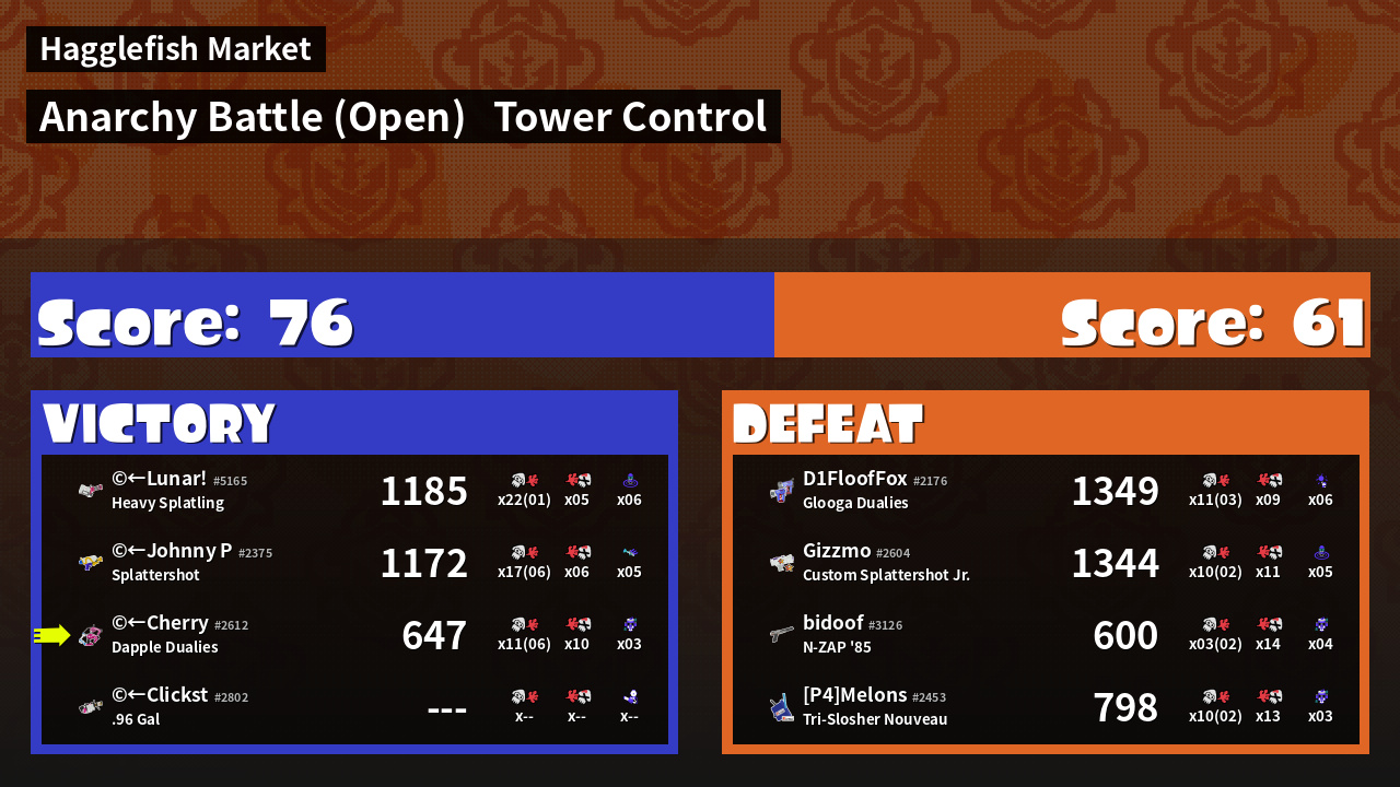 | Mode | Tower Control - Anarchy Battle (Open) | ||